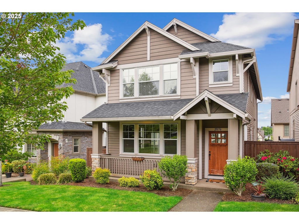 Welcome to this “Better Than New” home in the heart of Villebois. Designed with an exceptional floor plan, this home features a rare main-level bonus room—perfect for a playroom, cozy den, or office. The open-concept main level offers a spacious family room with a gas fireplace, flowing into a chef’s kitchen with all-quartz countertops (a premium builder upgrade), stainless steel appliances, a large island, and full-height backsplash. A bright dining area leads to the expanded deck, creating a functional, low-maintenance outdoor space ideal for entertaining, gardening, or pets. Positioned off the street with a corner-lot feel, this home is filled with natural light and offers serene green space views. Upstairs, the vaulted primary suite is a true retreat, featuring a soaking tub, walk-in closet, and scenic views. Three additional bedrooms provide flexibility, two with stunning Mt. Hood views and breathtaking sunrises. The tuck-under 2-car garage offers ample storage and spacious hall closet/mudroom. All appliances stay—including the garage fridge—making this home truly move-in ready. Located in one of Wilsonville’s most coveted communities, enjoy access to multiple parks and trails, a pool, sports courts, dog park, farmers market, holiday events and a vibrant plaza—all just minutes from top-rated schools, dining, and I-5. This is Villebois living at its best—don’t miss it!