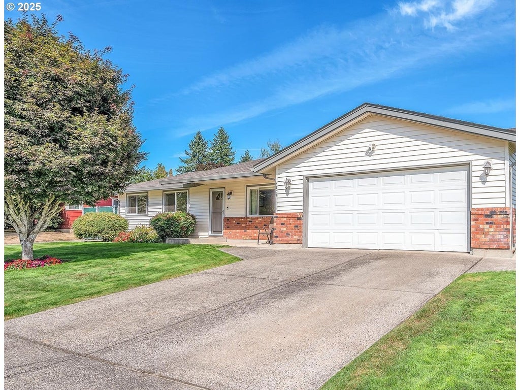 This fantastic 4 bedroom/2 bath one-level home is situated on a generous-sized .21 acre fully-fenced lot, complete with RV parking. The home features a completely remodeled kitchen in 2024 with new cabinets, quartz counters, tile backsplash, SS appliances, eating bar, and a charming nook that flows into the open concept great room which is highlighted by two walls of light-filled windows and a cozy wood-burning fireplace. A spacious primary suite offers an oversized double closet, ceiling fan, walk-in shower, and peaceful view of the backyard. New vinyl, double-pane windows in 2021. Outdoor Oasis: a trex deck with hot tub overlooks a huge, private backyard with mature flower beds—ideal for relaxation and entertaining. Newer 10x16 shed with power and metal roof. Permanent holiday lights. Separate RV driveway is 40 ft, with gated 28 ft RV parking area. This residence sits on a quiet corner lot near top-rated schools, shopping and easy freeway access, perfectly balancing comfort, style and convenience. This property has everything you need to make it your forever home!