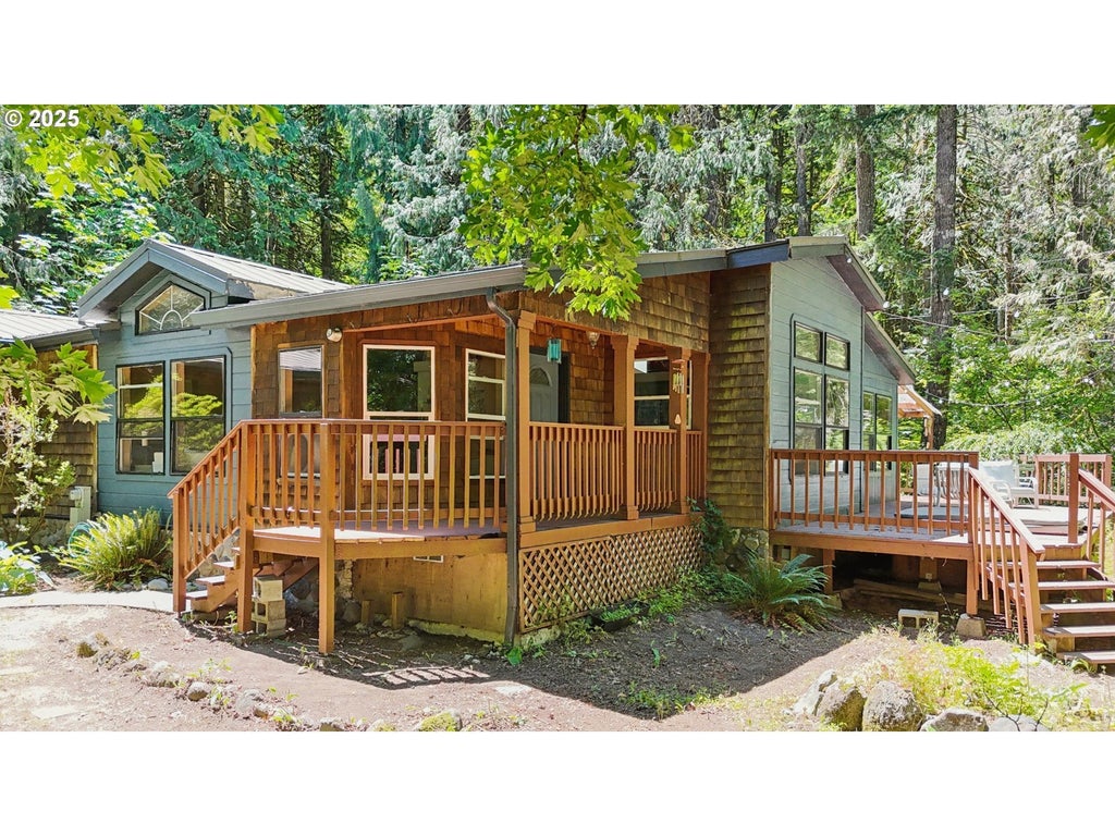 Welcome to your own private mountain retreat in the heart of Welches. Nestled at the end of a quiet private drive, this spacious and serene property offers vaulted ceilings, expansive windows throughout, and multiple outdoor living areas—including a covered deck, a private balcony, and a cozy firepit—perfect for enjoying the tranquil forest setting year-round. Enjoy direct access to a private neighborhood trail that leads to the Sandy River—perfect for peaceful walks and moments of quiet nature. Step inside to find two inviting living areas, a wood stove that adds warmth and charm, and a large eat-in kitchen equipped with all appliances. The generous primary suite features high ceilings, a jetted soaking tub, dual vanities, a huge walk-in closet, and direct access to a private balcony overlooking cedar trees—an ideal spot to enjoy your morning coffee.With four bedrooms, there’s plenty of room to spread out. The fourth bedroom is currently set up as a 1 bed / 1 bath in-law unit with a kitchenette, private entrance, and a locked hallway door separating it from the main home—offering excellent potential for short- or long-term rental income or easy reintegration into the primary living space. Outside, the oversized two-car attached garage offers ample storage, with additional parking space for RVs or boats and a wide turnaround driveway. The lot is beautifully wooded with native cedars and maples, providing privacy and plenty of usable space for gardening or entertaining. Ideally located for outdoor enthusiasts, you’ll also find yourself just minutes from the premiere Mount Hood’s year-round recreation: skiing, snowboarding, hiking, biking, fishing, kayaking, and more.