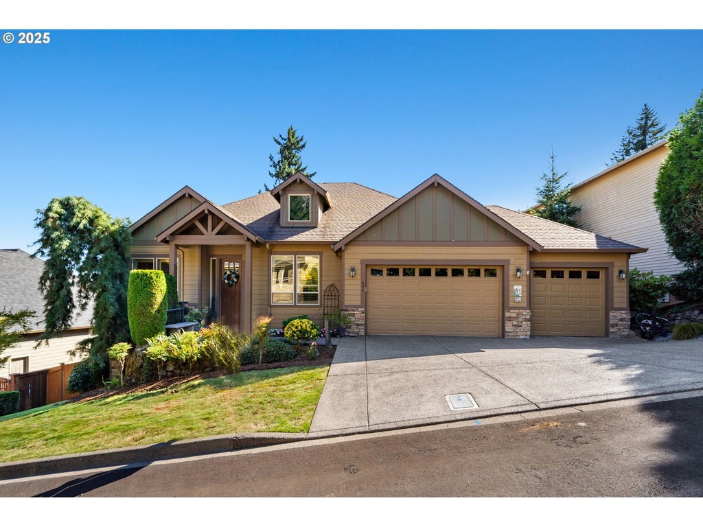 Welcome to a stunning home with a main-level primary suite offering privacy and captivating views of Mt. Hood, woods and territory. This meticulously maintained, one-owner residence showcases the sought-after open great room floor plan with four bedrooms, a dedicated office, and an additional family room. The inviting island kitchen — featuring newer quartz countertops — includes a breakfast bar, making it perfect for both casual dining and entertaining. Expansive windows fill the interior with abundant natural light. Savor your morning coffee or evening wine on the Trex deck while soaking in breathtaking views of Mt. Hood and partial river vistas. The lower level impresses with more amazing views from the bedrooms and great room, plus a convenient kitchenette—ideal for guests or multi-generational living. You’ll also find generous walk-in storage and a spacious three-car garage for ample parking and organization. The private backyard is a rare gem, complete with a flagstone patio and additional scenic views. Ideally located near downtown Camas, parks, trails, and freeway access, this exceptional home is served by the award-winning Camas School District. A perfect blend of comfort, convenience, and panoramic beauty—ready to welcome you home.