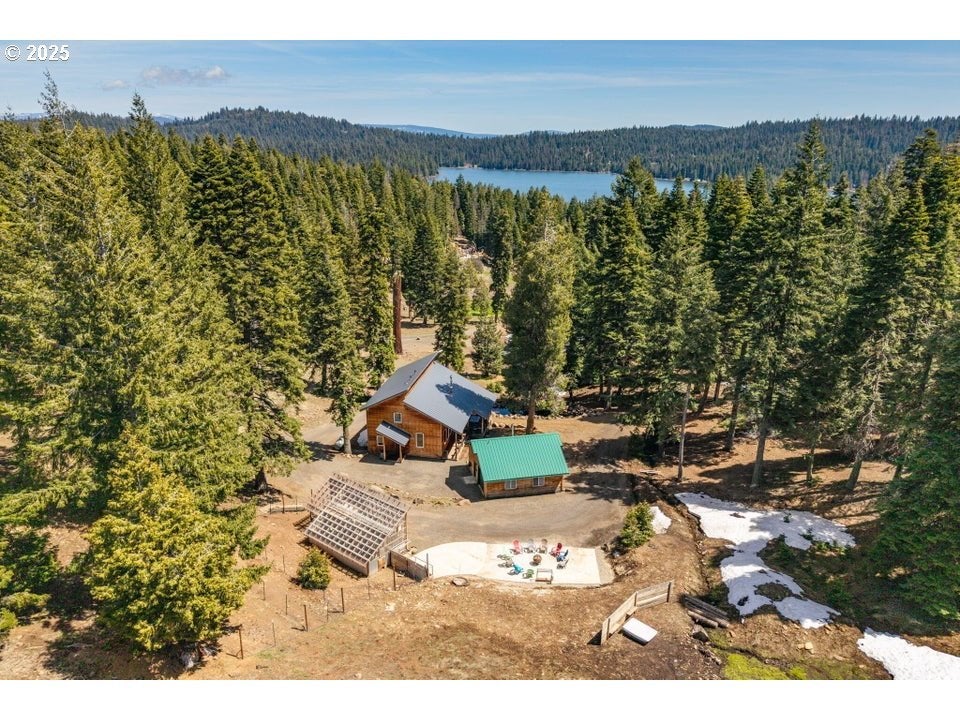Wanting to get away from it all? Well, this is it, across the hwy from Hyatt Lake and minutes to Howard Prairie. 2019 built, and 1990 sq ft. 3 bedrooms and an office or 4 and 3 bath, 2 story. Kitchen has cement countertops, kitchen Aid stainless appliances, hardwood floors and 17-18 ft ceiling. Primary is on the main level with a walk in closet and balcony, bathroom has double sink vanity, standalone soaking tub and separate shower. 2 full bathrooms on the main level. 2-3 bedrooms upstairs, 2 of them have walkin closets, the bathroom has double sink vanity and tub/shower combo. Upstairs also has a balcony with small view of lake. All this on a little over 5 acres with a detach shop/ garage, and bathroom in it. Along with green house/well house/ storage. Seasonal creek and pond, along with a back porch and wood bucket crane to hoist your wood up for the certified wood stove. This property backs up to BLM, also a 8000 Gallon holding tank for fire suppression. Chicken coop/ dog runs.