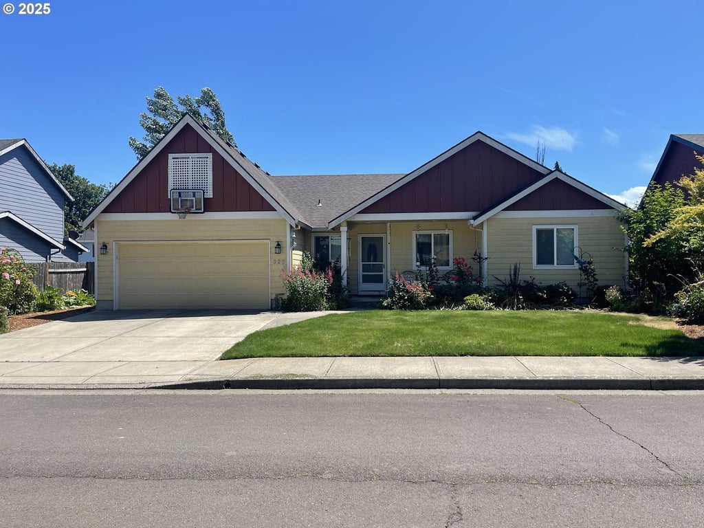 Main level living with bonus living space upstairs. Large lot with great covered patio, sprinkler system, beautifully landscaped, fully fenced backyard with fruit trees, raised garden beds and shed for extra storage. 3 bedroom, 2 bath. Main bedroom with bathroom has duel sinks, a walk-in shower and walk-in closet. Kitchen has island with stainless steel appliances and Granite counter tops, living room with vaulted ceilings, gas fireplace, bonus room upstairs.