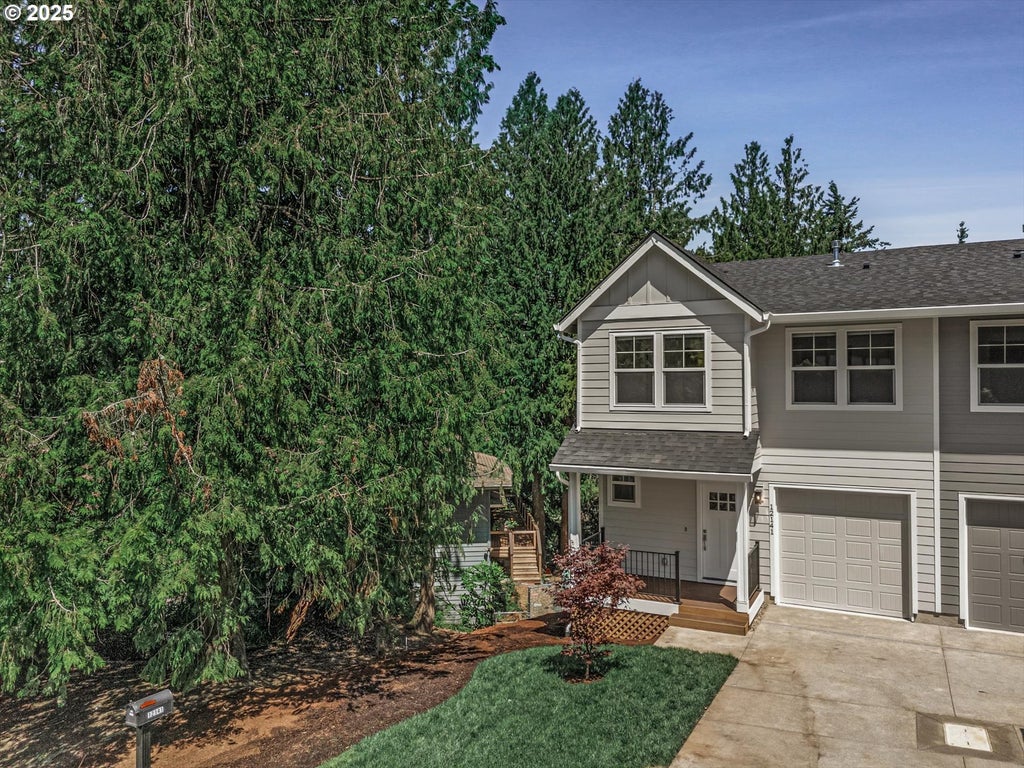 Location location location on a dead end cul-de-sac - Wonderful neighborhood and setting of detached single family homes and trees. New construction with 3 bedrooms and 2.5 bathrooms. No HOA dues. Vaulted primary suite with dual vanity and large walk in closet. Beautiful open kitchen with quartz counter tops, pantry, gas cooktop, island. All appliance's included: refrigerator, washer/dryer. Window blinds, ceiling fans. Deck with large fenced yard. Front yard with sprinkler system. This property is unique in its quality, location, home size and lot size. Great new construction property. See virtual tour