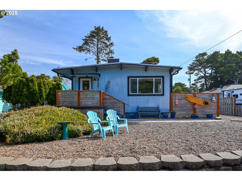 This renovated Mid Century charmer sits on a spacious, flat lot close to the beach. Located in the coveted Coronado Shores neighborhood, a walkable and bikable beachside community just south of Lincoln City with a seasonal outdoor pool, clubhouse, beachfront cabana, close beach access (4 minute walk) and fun community events!A few steps up to the front porch, leads you into the remodeled open concept living space that is filled with light from the large windows and features awesome vaulted wood & beam ceilings. Kitchen w/ quartz counters, white shaker cabinets, pantry w/ barndoor, and stainless steel appliances. Dining room w/ custom driftwood light fixture and big windows. Living room has a cozy gas fireplace w/ the original stone surround.
