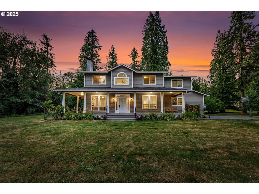 Rare find! Discover tranquility on this private, beautiful, 2.53-acre Salmon Creek estate. This custom 3947 sf, 6-bedroom, 4 bath home invites you to country living with a wrap-around porch. Step inside to vaulted ceilings, maple hardwood floors, maple cabinets and tasteful updates throughout. The main level offers formal living w/wood burning fireplace + dining room w/walk out to back yard porch and patio. Guest room/office w/attached bath on main level. Chef’s kitchen with island/eat bar, granite counters, stainless steel appliances, double oven, walk-in pantry – opens to family room w/pellet stove. Spacious laundry room with built-ins for lots of storage, folding and crafting + laundry chute and sink. Upstairs boasts a primary suite with spa-like bath complete w/jetted tub + walk-in tiled shower. Additional living quarters w/separate entrance + separate water heater, ideal for rental income ($1200/mo) or extended family, features LVP flooring, stainless steel appliances, granite counters, convection oven/microwave, portable induction 2 burner plate, barn door and walk in tile shower. Oversize-3 car garage, RV parking, garden + greenhouse, fruit trees covered patio, firepit area. New interior paint, new water softener 2025, furnace/heat pump 2022, 50 yr roof 2017, 3 40-gallon water heaters. Private road with cul-de-sac. Walk to Whipple Creek trail system, close to shopping, hospital + easy access to I-5/205 – PDX 30 minutes away. Don’t miss this extraordinary opportunity to call this estate HOME!