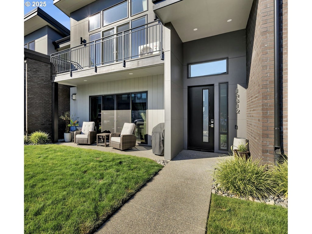 Discover refined living in this architecturally striking two-story contemporary home. From its open-concept layout to thoughtful, custom touches, this home offers the perfect blend of style, comfort, and elevated entertaining. The heart of the main level is the chef-inspired kitchen, outfitted with high-end appliances, sleek quartz countertops, and a custom-built bar featuring leather wrapped drawers, floating shelves, a wine refrigerator, and designer lighting—ideal for hosting guests or enjoying quiet evenings in. Step outside to a covered patio designed for entertaining or relaxing, complete with a gas hook-up for grilling or a future fire feature. Upstairs, retreat to the serene primary suite, where sophistication meets warmth. Enjoy waking up to river views from your private deck. The ensuite bath is a true standout, boasting a custom wood accent wall, spa-style walk-in shower, double vanity, and a deep soaking tub—creating a space that feels like your own private retreat. Two additional bedrooms on the second floor provide flexibility—ideal for guest rooms, dual home offices, or future expansion. A second-floor laundry room adds smart functionality, keeping daily tasks streamlined and convenient. Ideally located near shopping, restaurants, and freeway access, this home offers the perfect balance of peaceful living and city connectivity.