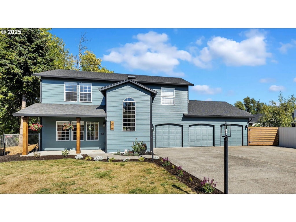 5 bedrooms, 3.5 Bathrooms, 2077 Sqft, large lot, 0.27 acre, 3 car garage AND 800sqft shop! HUGE driveway! Sits on a quiet cul-de-sac off the main road. Next to a greenspace, extra-large covered back patio, freshly painted exterior, all new exterior lights, updated landscaping. Dual primary suites, one downstairs with full en-suite completely remodeled including roll in shower perfect for multi-generational living, completely updated kitchen, all appliances stay, including washer and dryer.
