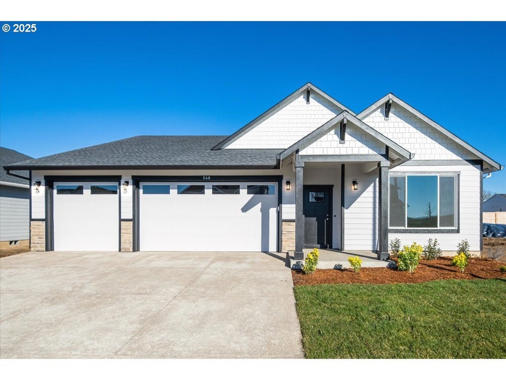 New Chad E Davis construction home. Finished and move in ready. One level with 9ft ceilings, Coffered Great room and fireplace. Well-appointed kitchen with Quartz counters, full tiled backsplash and ss appliances. Primary suite with full bath and walk in closet. Front yard landscaping with irrigation included. Taxes TBD.