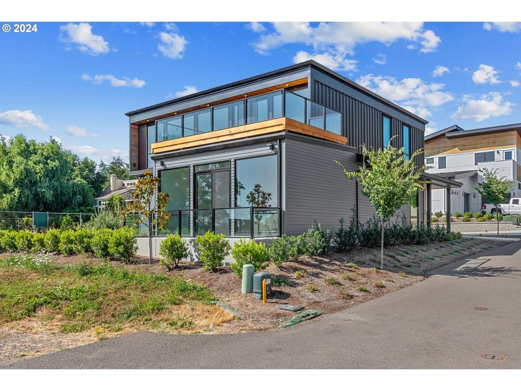 This home is a conversation piece and a resort-like experience. Watch airplanes land across the Columbia River from your massive deck connected to an ultra-modern Corten steel I-beam frame residence constructed by a commercial developer and designed to exceed energy code requirements. Stunning living room with protected (ask for details) river views from a wall of floor to ceiling windows. Open modern kitchen with ample cabinetry, island, and a river vista. Vaulted owners suite and two spare bedrooms plus bonus room (or spare closet) up. Family room, bedroom or office, and entry with built-ins down. Extra deep (660 sq. ft.) finished garage. Nestled against protected greenspace. Last home on a quiet drive. Nothing else like it. Click the virtual tour link for a 3D tour and floorplan.