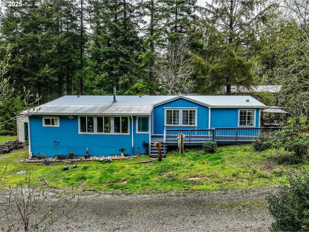 Coastal Bliss! Beautifully updated 1989 manufactured tucked away on a private 1.1-acre lot. The home offers a flexible floor plan with two spacious bedrooms, office/third bedroom and two bathrooms. Large open-concept main living area with woodstove, vaulted ceilings and luxury vinyl flooring. The updated kitchen boasts soft close cabinets, quartz counters, custom backsplash, stainless appliances and a pantry. Exterior offers 1200 sq ft shop with concrete floors and 200 amp service. RV parking and a separate garage/workshop for extra covered space. Expansive yard with greenhouse. The property is fully fenced, is contiguous to the Bandon Dunes Golf Resort, and is approximately 10 minutes from Whiskey Run Beach!