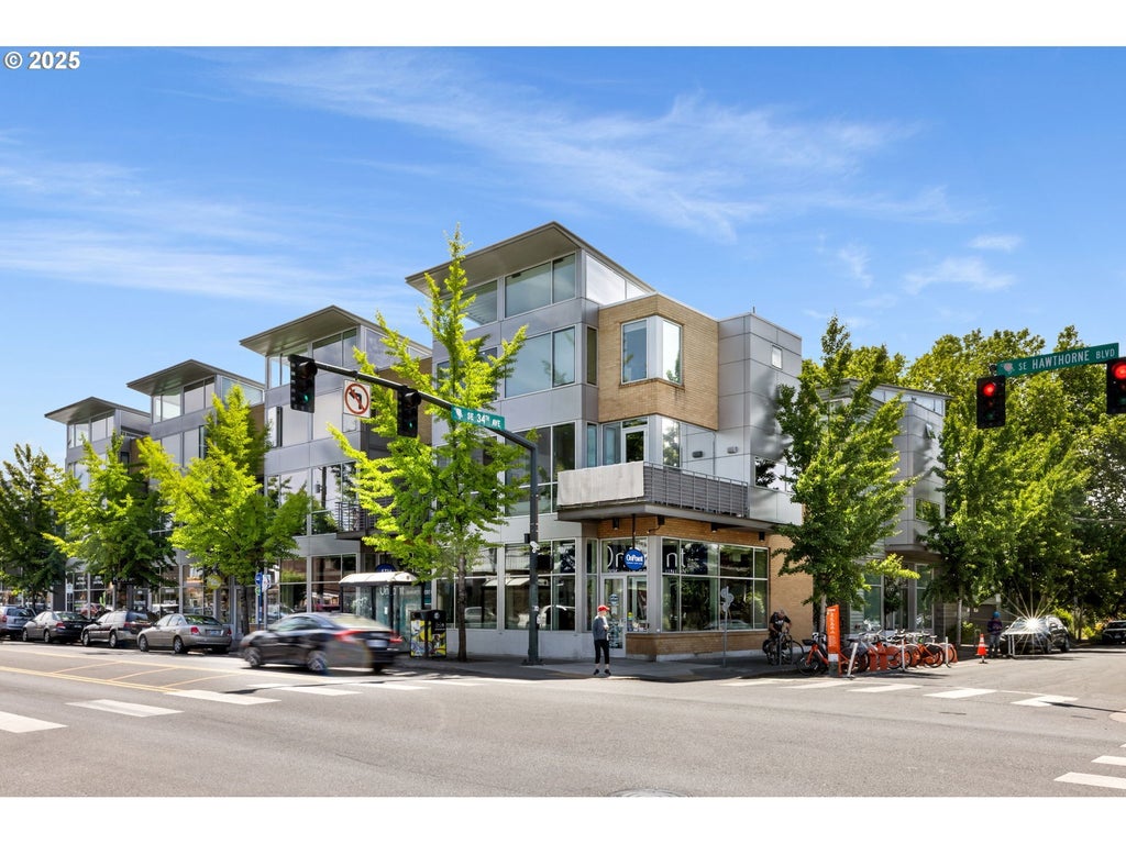 This townhome-style condo offers the perfect blend of modern living and privacy—an ideal urban retreat nestled in the hub of the Hawthorne District. Whether you're seeking a home or, with no rental cap (no short-term rentals), a smart investment, this is your opportunity. Tucked at the back of the property, the unit offers a rare sense of seclusion. Inside, volume ceilings on both levels create an airy, spacious feel, and floor-to-ceiling windows flood the interior with natural light. The open main-level floor plan features concrete flooring, a well-designed kitchen with a breakfast bar, a dining area, and a living room that opens to the quiet, peaceful balcony. Ample closet space throughout adds convenience and functionality. With a Walk Score of 97 and a Bike Score of 100, car-free living is well within reach, but an assigned, deeded garage space is included, ideal for parking or additional storage.