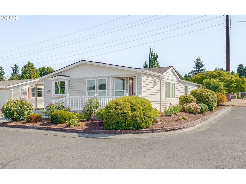 Welcome home! Meticulously maintained and clearly loved, this fabulous residence offers all the warmth and comfort of a traditional home, while maintaining community within a manufactured home park of 55+ residents. Situated on a desirable corner lot, the home is complemented with abundant parking — from the spacious driveway to the extended carport, plus generous surrounding street access, and nearby RV parking. The carport alone is impressive, and the attached breezeway and expansive storage areas rival what you'd find in most full-sized garages. The carport ceiling is finished to provide more than enough space in the gable, for more storage needs. Step inside the home to see the thoughtful upgrades and tasteful design. The roof was replaced in 2023, and in 2024, the kitchen was beautifully remodeled — featuring new flooring, countertops, upgraded appliances, a charming custom pantry door, and an abundance of custom cabinetry. The main living area includes wall-to-wall carpeting, large closets, and windows adorned with top-down/bottom-up blinds — some even with blackout shades for optimal privacy. Bathrooms have been upgraded with ADA-height elongated toilets and elevated vanities for ease of use. The primary bedroom, with it's extra large closet, is a true retreat, offering an en-suite experience complete with a walk-in shower, tile flooring, and ample storage. In addition, a shared-access bathroom, between the living area and utility room adds convenience for visitors. The utility room is another standout — complete with a deep sink, built-in storage, room for an upright freezer, and an additional separate storage room. You’ll also love the insulated, energy-efficient vinyl siding, and low-maintenance Trex porches with stylish vinyl railings. The interior offers a smart layout with comfort in mind. Set in a quiet, well-kept neighborhood, this home is move-in ready and tastefully decorated throughout with a pride of ownership design, to feel like home.