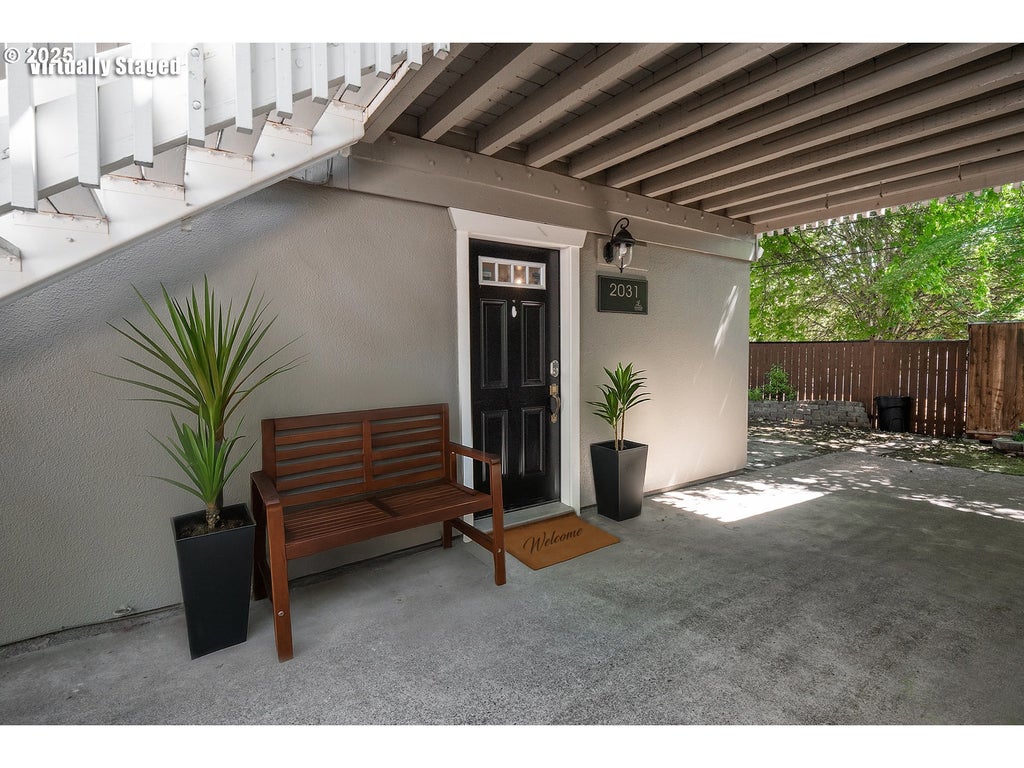 Splendid main level condo in the desirable and convenient West Eugene! Clean, updated, and easy to maintain - sweet kitchen with updated cabinets, black subway tile, deep stainless steel sink, and SS appliances. All kitchen appliances and stackable washer/dryer are included. Bathroom has updated vanity, toilet, fixtures and offers a walk-in shower. Small yard/patio is nicely shaded with trees and offers a small storage shed. Perfect hangout for bistro set and potted gardening! Don't miss this affordable gem, close to shopping, bus line, bike paths, medical facilities and amenities! This unit has a designated bike storage locker #2031 and assigned parking space #17.