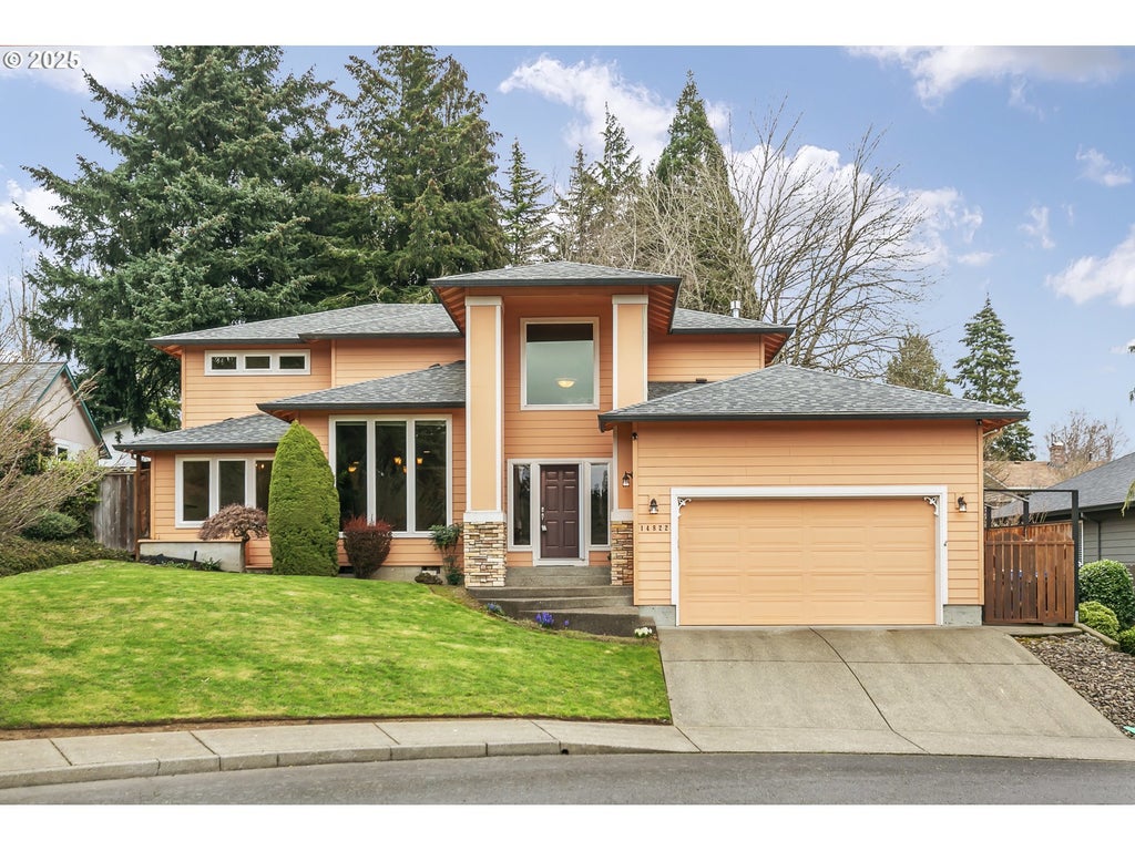 Situated in a desirable Oatfield neighborhood this contemporary gem features high ceilings, elegant millwork, and an open floor plan that flows seamlessly for easy entertaining. A formal dining area, illuminated by a stylish chandelier and tall windows, provides an inviting atmosphere. The great room is enhanced by its grand fireplace and floor-to-ceiling windows, while the kitchen showcases handsome cabinetry, tiled countertops, and a charming breakfast nook.Upstairs, the private primary suite impresses with a double-door entry, an exclusive balcony, and a spa-like ensuite with a soaking tub. Enjoy the lush backyard with a flagstone patio & cascading water feature greenery, creating a private retreat. Additional highlights include a laundry room with new washer/dryer, new roof, generator, ample storage, and an attached 3-car tandem garage. Set on a tranquil street, you’re still close to parks, shopping, and the I-205. Take advantage of the new carpets & interior paint!
