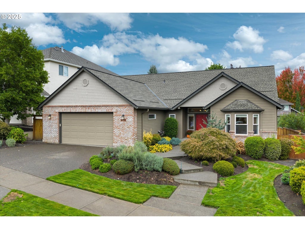 Single level living in Oakridge Estates with the prettiest yard in the neighborhood. Great room floor plan with fireplace and built-ins and dining room with built-in buffet and sliding doors to a large deck and private, park-like backyard. Kitchen highlights include an island, custom cabinetry, appliance garage, built-in oven, microwave, and cooktop with downdraft. Spacious primary suite with deck access, soaking tub, walk-in shower, and dual vanities. Two additional bedrooms, hall bath, and a large, dedicated office with built-ins. Community amenities include sports court, park, and amphitheater. Convenient to Bethany Village and neighborhood trails.
