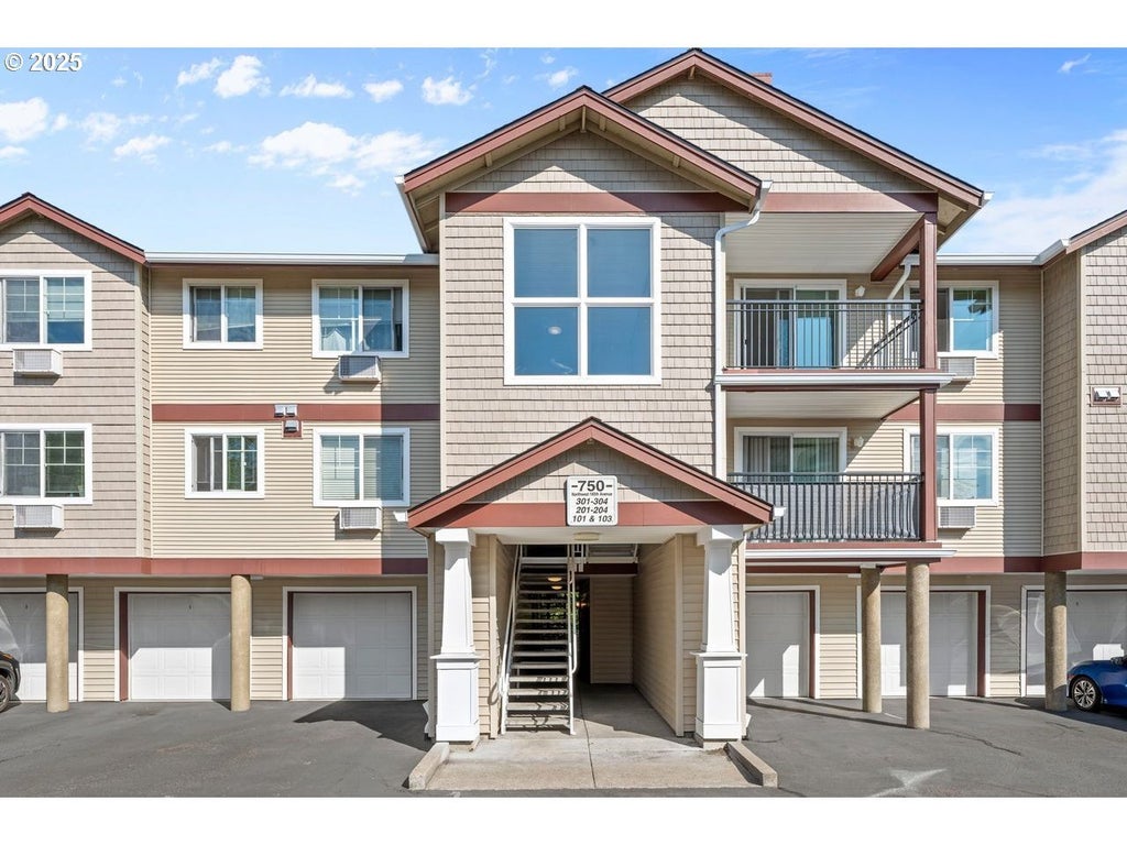 Superb location in a highly desirable Tanasbourne area near the MAX blue line, multiple PCC Campuses, the convenience of HWY 26 and minutes from the Nike Headquarters and multiple Intel campuses. Abundant variety of restaurants, shops, and businesses are nearby. Enjoy the proximity to shopping at The Streets of Tanasbourne, Trader Joe's, Whole Foods and Tanasbourne Town Center. Magnolia Meadows, Autumn Ridge Parks, Rock Creek Trail, Tualatin Hills Park and more outdoor trails and activities are close by. With a few easy steps up, this 2 Bedroom/2 Bathroom unit is conveniently located on the second floor and offers seamless one-level living. The well-designed open floor plan offers a spacious kitchen with plenty of countertop area, eating bar, stainless steel appliances and built-in microwave. Living room with fireplace and sliding door to a generous size balcony with an outdoor storage closet. The deck view is the serene green space. The primary bedroom offers a walk-in closet and spacious bathroom with a soaking tub. The unit includes built-in shelving for additional storage. The monthly HOA fee covers water, sewer, garbage, and exterior maintenance. Features an in-unit washer and dryer and a newly replaced refrigerator. Dedicated covered parking space 750-203. Built in A/C in both bedrooms. Come enjoy the comfort and convenience of Tanasbourne.