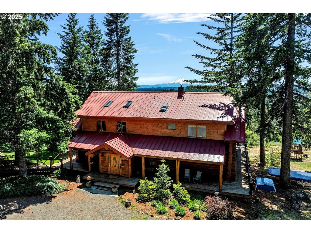Private Columbia Gorge Hideaway! 20 gorgeous acres; fields, forests, and trails right out your door. Outdoors enthusiasts will understand this one can't be beat! Just 20 minutes from White Salmon, this 2300+ sqft charming log home is warm & inviting with a wraparound covered deck and wonderful views in every direction. A huge Mt. Hood view to the south will be enjoyed through all the seasons. The main level features a vaulted great room with a towering basalt fireplace & woodstove insert, a newly remodeled kitchen, a dining area with Mt. Hood view, the primary bedroom, utility, and an extra-large entry mud room! The recently remodeled kitchen includes contemporary stainless steel appliances including a dual fuel range and a wonderful center island; a chef's delight! The master bedroom has easy access to the deck, 2 walk in closets and is adjacent to a full bath! The upper level features a vaulted family loft, 2 bedrooms & a fully updated bathroom. An additional 676sqft guest house with options for an adu is adjacent and is accessed by a charming walkway! This 1 bedroom + loft log cabin offers multiple uses with a full bath and mini kitchen. There is plenty of room for livestock with fenced pastures and a barn. The property is ready for horses, mountain bikers, hikers, hunters and all outdoor adventurers! A newer machine shed, a double car garage with an adjacent workshop and a newly drilled well in 2016, make this home move in ready! Lots of storage in the lower level and the radian floor heat system is housed there as well. Rural Zoning: 10 acres minimum. Rural Zoning allows for division to two 10 acre acre parcels subject to meeting guidelines for division; lots of options for this great property. After 24 years of love and enjoyment through raising their family on this self-sustaining retreat, it is time to go on to the next adventure!! Maybe it is the answer to your dreams!