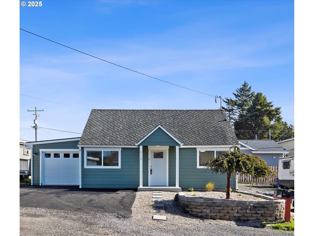 MOVE IN READY! Recently remodeled, this home with 3 bedrooms, 1 bath, 1 car garage, has many updates with a complete remodel completed in 2025, including new paint interior/exterior, roof, gutters, siding, paved driveway, windows, luxury LVP flooring, carpet, energy efficient LED lighting, plumbing fixtures, quartz counter tops, cabinets, stainless steel kitchen appliances. Fully fenced and professionally landscaped low maintenance back yard with a new patio and firepit. Great starter home or beach get away. Close to many amenities such as trails, lake, beach, shopping, post office, library, and more. Move in ready! 1 year basic home warranty included with acceptable offer!