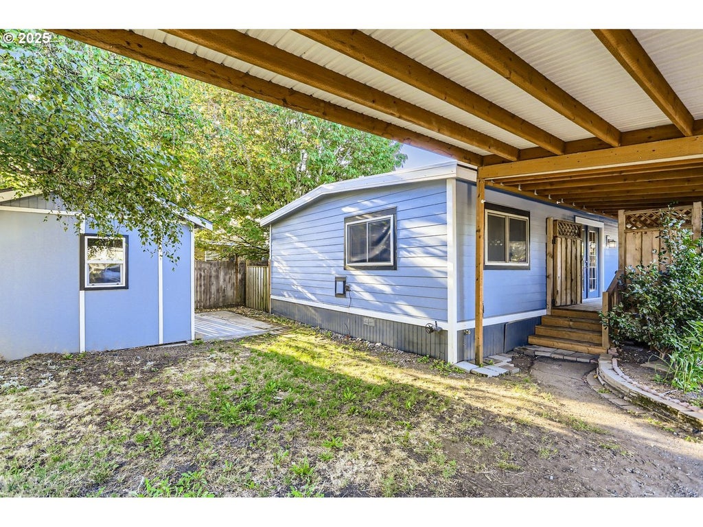Move-in ready corner lot home with modern updates! This home offers the perfect blend of comfort and style. Step inside to a BIG open living area filled with natural light and brand-new laminate flooring throughout. Stunning kitchen with tile backsplash, granite countertops , soft closing cabinets ,stainless steel appliances and a brand NEW electric range!This home was recently remodeled with new interior paint, baseboards, trims, doors and a NEW HVAC heat pump! Relax on the welcoming fully gated front porch and patio with cement floor for easy maintenance and cleaning. Perfect for kids and family gatherings. Plus an additional private backyard for pets. A bonus storage shed and covered carport for your convenience with parking for up to 4 cars. All located in a pet friendly all-ages community, in a great location close to shopping, dining and transportation! All within walking distance.This is a must see!