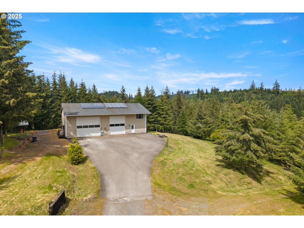 Secluded 40-Acre Forested Retreat with Versatile Barndominium Work/Live Setup. Tucked away at the private end of a road, this expansive 40-acre forested property offers a rare blend of privacy, functionality, and natural beauty. Sunroom could be used as a third bedroom, two bedrooms have ensuite baths. home is uniquely built inside a large, insulated, and heated 40' x 60' shop, creating the ideal live/work environment. Inside the shop, you'll find a bright sunroom/office, which connects via the utility room to a spacious main-level bedroom/office with en-suite full bath. The sunroom features custom knotty pine cabinetry, abundant natural light, and its own wraparound private deck. Upstairs, the main living area boasts vaulted ceilings with exposed beams, a ceiling fan, woodstove, and a second deck for enjoying the peaceful surroundings. The kitchen is equipped with knotty pine cabinets, a range, refrigerator, dishwasher, microwave, pantry, and a breakfast bar. A second primary suite includes a private entrance to the bathroom and a ceiling fan. The property features numerous outbuildings and amenities including a chicken coop with power, large pole barn, formerly used as a small lumber mill, covered wood storage near the shop, lean-to adjacent to a storage container. The shop is a standout feature with 3-phase power, paid-in-full solar panels on the roof, an overhead beam crane hoist, three 14' roll-up doors (front and back), heavy-duty shelving, and rebar-reinforced concrete floors. Located just 8 minutes from Mulino and Hwy 213, this property offers the perfect balance of a secluded setting and accessibility. Follow the signs on the property to walk to the year round creek