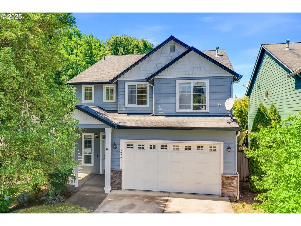 Seller's preferred lender offering complimentary 1-0 buydown! This 2,073 SqFt, 4-bedroom, 2.5-bath Craftsman home in the Whipple Creek community offers a practical and stylish layout. Features include 9-foot ceilings, hard surface floors, brand new carpet upstairs, and large windows that bring in ample natural light. The living room centers around a gas fireplace with a stone surround. The kitchen includes hickory cabinetry, quartz countertops with an eating bar, updated pendant lighting, and a spacious pantry. All appliances are included: refrigerator, a new double oven, a microwave, and a dishwasher (installed May 2025). The dining area opens to a fully fenced backyard with a newer deck—perfect for outdoor gatherings. Upstairs, new carpet runs through all four bedrooms. The vaulted primary suite has two walk-in closets and a private bath. The oversized fourth bedroom can serve as a bonus, rec, or media room. The laundry room is also located upstairs, and the washer and dryer are included. The low-maintenance yard includes a sprinkler system and a GREEN SPACE/PARK behind the home. Located near parks, walking paths, well-loved schools, shopping (hello, Trader Joe's and Chipotle!), restaurants, and with easy access to I-205 and I-5.