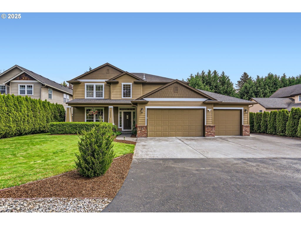 Welcome to this stunning two-story home offering a spacious layout and exceptional curb appeal. A grand two-story entry with gleaming hardwood floors and an open wood staircase creates an inviting first impression. The bright living room features large windows that fill the space with natural light, while the cozy family room with a fireplace is perfect for relaxing evenings. The well-appointed kitchen includes a center island, stainless steel appliances, and tile countertops—ideal for everyday cooking and entertaining. Upstairs, you'll find four generously sized bedrooms, including a vaulted primary suite with a luxurious jetted tub, double sinks, a separate shower, and a large walk-in closet. Beautifully landscaped with a sprinkler system, the expansive fenced backyard provides plenty of room for outdoor activities, with side space for RV or boat parking. A covered deck offers the perfect setting for year-round entertaining. With ample parking and a prime location just minutes from parks, shopping, dining, and freeway access, this home truly has it all!