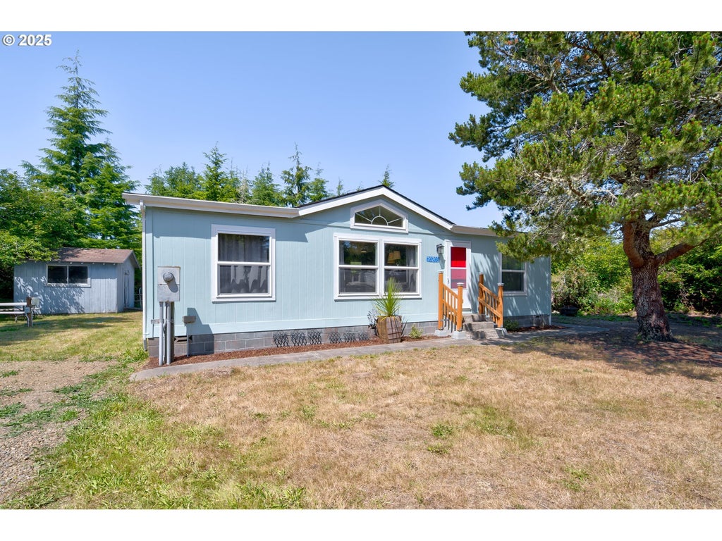 Welcome to your tranquil coastal retreat in the heart of Sunset Sands. This inviting 3-bedroom, 2-bathroom home features a vaulted great room floor plan with wood laminate flooring throughout, creating a bright and open living space. The primary bedroom includes a walk-in closet and attached bathroom, while a newer septic system and a newly added covered deck off the laundry room offer comfort and convenience. All appliances are included, and the spacious yard with a storage shed provides plenty of room for outdoor enjoyment. Beyond the home, nature beckons. Residents of Sunset Sands enjoy access to a serene lake—perfect for kayaking, fishing, or simply soaking in the peaceful surroundings. With the beach just minutes away and scenic trails nearby, this location offers the best of coastal and lakeside living. Whether you're seeking a weekend getaway or a full-time sanctuary, this Sunset Sands stunner delivers the lifestyle you've been dreaming of.