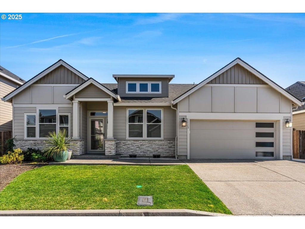 This stunning single-level home offers over 1,800 sq ft of thoughtfully designed space, blending comfort and style for modern living. With three spacious bedrooms and two full bathrooms, every detail was crafted with both elegance and convenience in mind. The primary suite is your private retreat, featuring a spa-like bath with a curbless roll-in shower. The second bath features a relaxing tub—perfect for unwinding after a long day. At the heart of the home, the open-concept floor plan connects a gourmet kitchen, dining area, and inviting living room with a grand gas fireplace—perfect for gatherings, entertaining, or cozy evenings in. The chef’s kitchen shines with quartz countertops, an oversized island, a double oven, a 5-burner gas cooktop, stainless steel appliances, a pantry, and abundant storage. Custom window shades throughout add both privacy and style! Seamless indoor-outdoor living awaits with large sliding doors opening to a private backyard oasis, complete with a covered patio, lush landscaping, and a sprinkler system for effortless enjoyment year-round. Located just steps from Dogwood Neighborhood Park, you’ll love morning walks, weekend play, and evening relaxation close to home. Plus, you’re minutes away from top shopping, dining, and everyday conveniences. This home is better than new—and it’s waiting for you! Open House: Saturday 9/6 1:30-3:00pm.