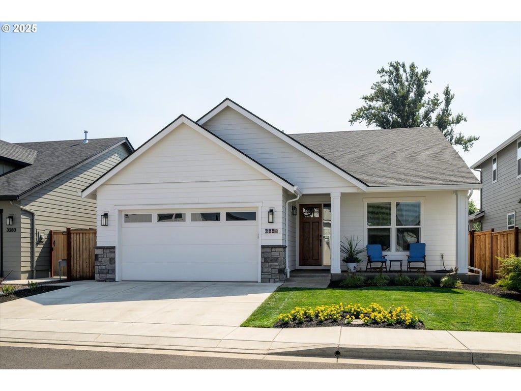 Stunning, turn key ready, single-level Bruce Weichert home located in Mountainvale Subdivision just waiting for you to call home! Step inside to experience high and vaulted ceilings, beautiful brushed oak flooring, and an abundance of natural lighting throughout. The gourmet kitchen features quartz countertops, herringbone tile backsplash, stainless steel appliances, gas-range with upgraded range hood, farmers sink, and an island. An open concept living room includes a gas-fireplace. These areas are perfect for entertaining. The primary suite has crown molding, a walk-in closet and an attached bath with a luxurious fully tiled shower. Two other bedrooms, a hallway bathroom with a tiled tub/shower and indoor laundry that can accommodate a gas dryer complete the interior. Out back, enjoy any season on the 9'x11' covered patio with gas stub. Low maintenance yard and landscaping, toolshed, and underground sprinklers. Great location within walking distance of Douglas Gardens Park, both elementary and middle schools and the Jasper Road Trailhead or Mill Race path where you can enjoy nature and the outdoors with walks, hiking, or bike rides!