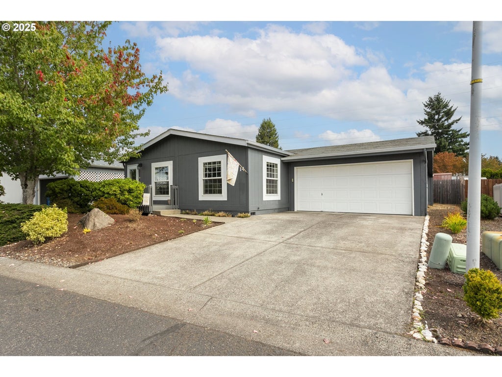 Your Dream Home Awaits in Vancouver’s Premier 55+ Gated Community! Step into comfort and style with this beautifully updated 2-bedroom, 2-bath gem nestled in one of Vancouver’s most sought-after manufactured home communities. From the moment you arrive, you’ll feel right at home. Interior Highlights:Open-concept layout with vaulted ceilings and sleek Pergo flooring in kitchen and bathrooms (carpeted bedrooms for added coziness). Remodeled kitchen featuring quartz countertops, abundant cabinetry, a spacious eating bar, and modern appliances—including a new stove/oven, dishwasher, and garbage disposal. Updated bathrooms with new vanities, fixtures, toilets, and exhaust fans for a fresh, spa-like feel. Generous bedrooms with walk-in closets and newer carpet (just 5 years young). New vinyl windows in select rooms for improved energy efficiency and natural light. Exterior & Extras: Converted garage with new garage door and opener—plus extra storage/workshop space. Private fenced yard and covered patio perfect for entertaining or quiet mornings with coffee. Community perks include a small park, RV parking, and a secure gated entrance. Prime Location just minutes from shopping, dining, and everyday conveniences. This home offers the perfect blend of tranquility and accessibility.