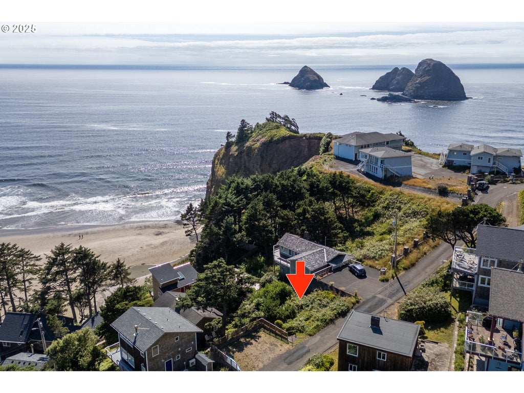A rare opportunity in the heart of Oceanside Village! This elevated residential lot sits just one parcel back from the oceanfront, offering sweeping, unobstructed views of the Pacific, Cape Lookout, Netarts Bay, and dramatic up-close vistas of the sand and surf. Watch the waves roll in and the tide shift from your future living room. The property is sloping with a level bench that creates a natural building site. Public water and sewer are already connected, a $25,000+ value. Topographic survey and proposed house plans on file to inspire your vision. The home below does not obstruct views. Existing structure on site is of no value. Properties like this are few and far between. Don't miss your chance to own a premier lot in one of the Oregon Coast's most beloved beach towns.