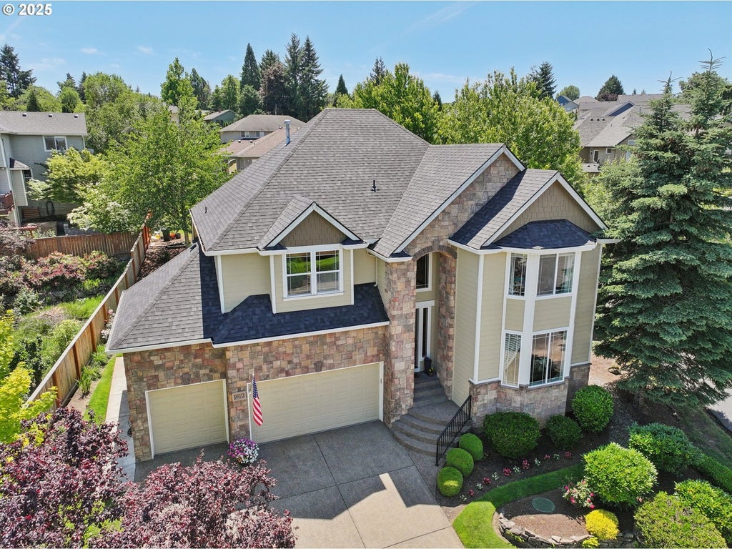 Welcome to this stunning Prune Hill home in the highly desirable Camas School District. From the moment you enter, you’re greeted by a grand staircase with exquisite millwork and iron balusters, setting the tone for the craftsmanship found throughout. The living room features a granite-surround fireplace, bay window, and crown molding, flowing seamlessly into the formal dining room—perfect for entertaining. The vaulted great room, with its impressive stone-surround fireplace, offers an inviting space for gatherings. The gourmet kitchen is a chef’s dream with a large island and breakfast bar, stainless steel appliances, granite countertops, alder cabinetry, built-in desk area, and a spacious walk-in pantry. French doors from the kitchen dining area lead to a private patio, ideal for outdoor entertaining. The primary suite is a true retreat, featuring a tray ceiling, walk-in closet with built-ins, sound system, and French doors to a private balcony. The spa-like bath includes dual vanities, a jetted soaking tub, and walk-in shower. Three additional bedrooms, a den/office with French doors, full bath, powder room, and laundry room with washer, dryer, sink, and built-ins complete the interior. Premium finishes such as Brazilian cherry hardwoods, Berber carpet, travertine tile, and central vacuum add to the home’s appeal. The landscaped yard includes a patio, fire pit, and water feature, plus a fence credit. Enjoy a private park across the street, proximity to the airport, and charming downtown Camas. This exceptional home combines elegance, comfort, and convenience in one of the area’s most sought-after neighborhoods. Don’t miss the opportunity to make it yours—schedule a private showing today. Mortgage savings may be available for buyers of this listing.