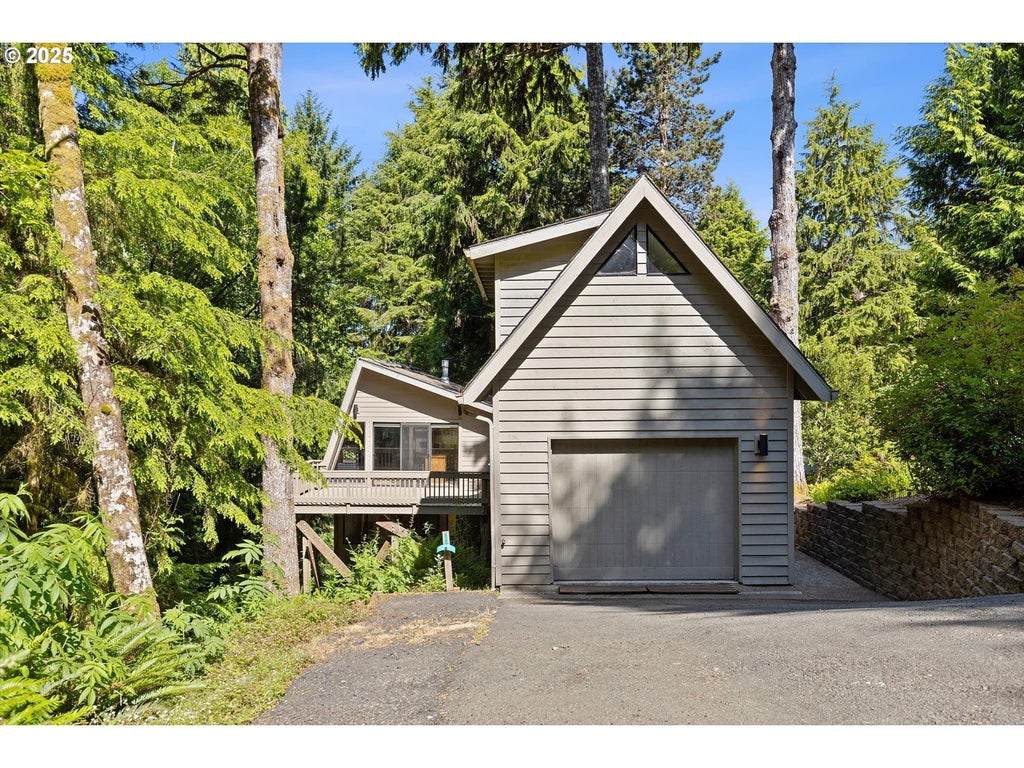 SALISHAN HILLS STUNNER! Owners have invested over 194K in renovations and updates!! Salishan golf course front home is nestled in the trees, overlooking the 4th tee on the Peter Jacobsen designed 18-hole golf course. Lovely lodge inspired details of warm cedar wood accents, vaulted ceilings, large windows and gas fireplace. Slider off the kitchen leads to oversize deck for additional outdoor living and entertaining area. Expansive primary suite has modern closet doors and updated bath. 2 guest bedrooms and renovated bathroom. Fantastic studio/guest quarters or office with a 1/2 bath above the detached garage. Relax and enjoy the multiple decks! Recent work includes foundation and cross bracing work, new flooring, 2 fully renovated bathrooms, paint, lighting fixtures, and much more!