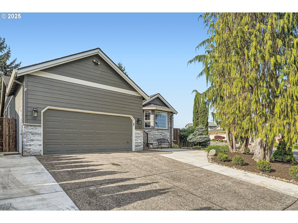 This beautifully maintained 3-bedroom, 2-bath home boasts a thoughtfully designed open layout, featuring vaulted ceilings in the living and dining areas—perfect for entertaining. The spacious, open-concept kitchen includes an island, generous counter space, and all essential appliances. The primary suite offers a relaxing tub and a walk-in closet, while durable laminate flooring extends throughout the entire home. Step outside to a fully fenced backyard with a patio and shed, ideal for summer BBQs and outdoor gatherings.The expansive lot provides ample space to accommodate your needs, whether it’s boat or RV parking, mechanical hobbies, gardening, or even the potential to build an ADU. A fantastic opportunity in a prime location! Additional highlights include air conditioning, a 2-car garage, a newer roof, and fresh exterior paint. New roof 2022. Patio furniture will stay. Conveniently situated just 10 minutes from PDX and minutes from the 205 Bridge/Hwy 14 interchange, this home offers easy access to shopping, dining, and major freeways.