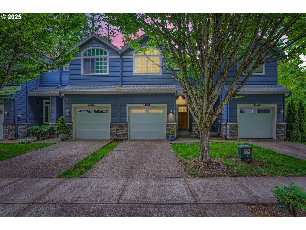 Welcome home to this well-appointed and remodeled Townhome. BRAND NEW ROOF coming soon! Spread out in Dual Primary Suites upstairs & a huge Bonus/Media or 3rd bedroom on fully finished lower level. Savor the private outdoor space nestled among the trees in the best location of the development. Enjoy a peek at Mt. Hood from the upper deck and al fresca entertaining on the main level plus a walk-out on the lower level to green space. The updated kitchen boasts Quartz countertops, a gas range and stainless appliances and flows effortlessly into the great room with gas fireplace. Upgrades also include new flooring and paint, HVAC, plumbing, water heater, smart LED lighting, Nest thermostat and keyless entry. All appliances are included, making this home truly turnkey. Low cost HOA covers front landscaping for low-maintenance living. Conveniently located just minutes from Nike and nearby Sexton Mountain Elementary, local parks, Westside Trail and shopping/dining on Murray Blvd, this is a rare opportunity to own a stylish, updated townhome in a coveted community.