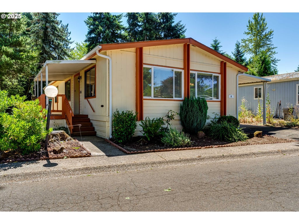 Move in ready! Welcome to Falcon Wood Village, a vibrant 55+ community! This well maintained double-wide manufactured home offers high ceilings, abundant natural light, and plenty of storage throughout. Enjoy a bright living room, a dining area with built-in cabinetry, and a spacious kitchen with an eating bar perfect for casual meals or entertaining. The laundry room includes a convenient built-in desk, and the large primary bathroom features stylish tile flooring. Recent updates include a new roof and gutters (2022) and a new HVAC system (2022) for year round comfort. Paver sidewalks surround the home, offering easy accessibility. Outside, you'll find a tool shed and space for raised garden beds ideal for any green thumb. Home is located on the LTD bus line and in the area of shopping, restaurants, and big box stores. Don’t miss your chance to see this gem—schedule your showing today!