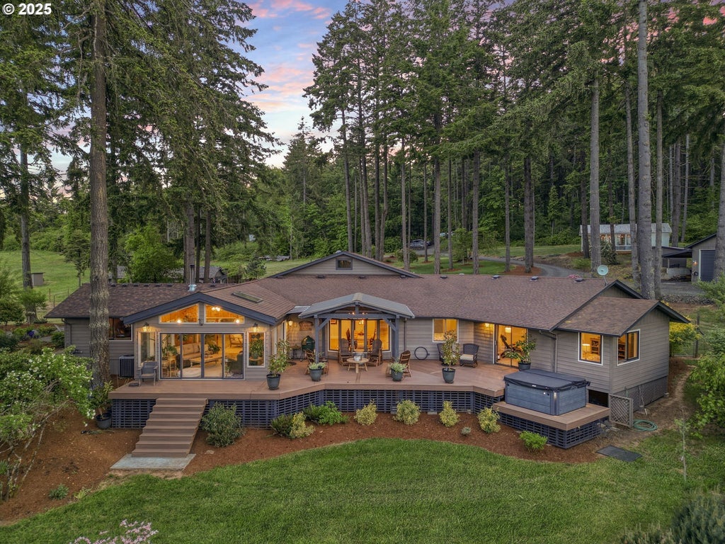 Don't miss this home privately tucked behind a gated drive, this exceptional single-level custom estate blends luxury living with breathtaking natural beauty. A park-like circular drive, framed by manicured landscaping, welcomes you to a home that offers both elegance and tranquility. Designed to maximize its elevated setting, the residence captures commanding eastern views of the Willamette Valley and Coburg Hills, and southern views of Fern Ridge Reservoir. The open-concept great room extends through a light-filled sunroom to a spacious deck—creating an effortless flow for entertaining or enjoying peaceful moments surrounded by nature. The gourmet kitchen is built for both beauty and function, featuring a substantial granite island, gas cooktop, double ovens, and a fully equipped butler’s pantry. The primary suite is a private retreat offering sweeping views, direct access to the deck and hot tub, and a spa-inspired ensuite with heated tile floors, a deep soaking tub, custom walk-in shower, double vanities, and high-end fixtures. The adjoining dressing room and walk-in closet includes a freestanding infrared sauna and opens to a secluded garden sanctuary. A 30,000 kW Siemens propane backup generator automatically powers the entire property in the event of an outage. The home includes an oversized two-car attached garage, a 40' x 24' secondary garage, and a 60' x 46' professional-grade shop with high bay doors, a half bath, and a 60' x 12' covered storage area suitable for RVs or recreational equipment. A 36' x 14' greenhouse and a small, stylish chicken coop sit discreetly on the grounds, complementing the landscape without distracting from the home’s overall elegance. The surrounding acreage provides open fields ideal for recreation, livestock, or equestrian use. This is not a drive-by property—the home is not visible from Butler Road. Showings available by private appointment only. Additional a new roof installed 8/25