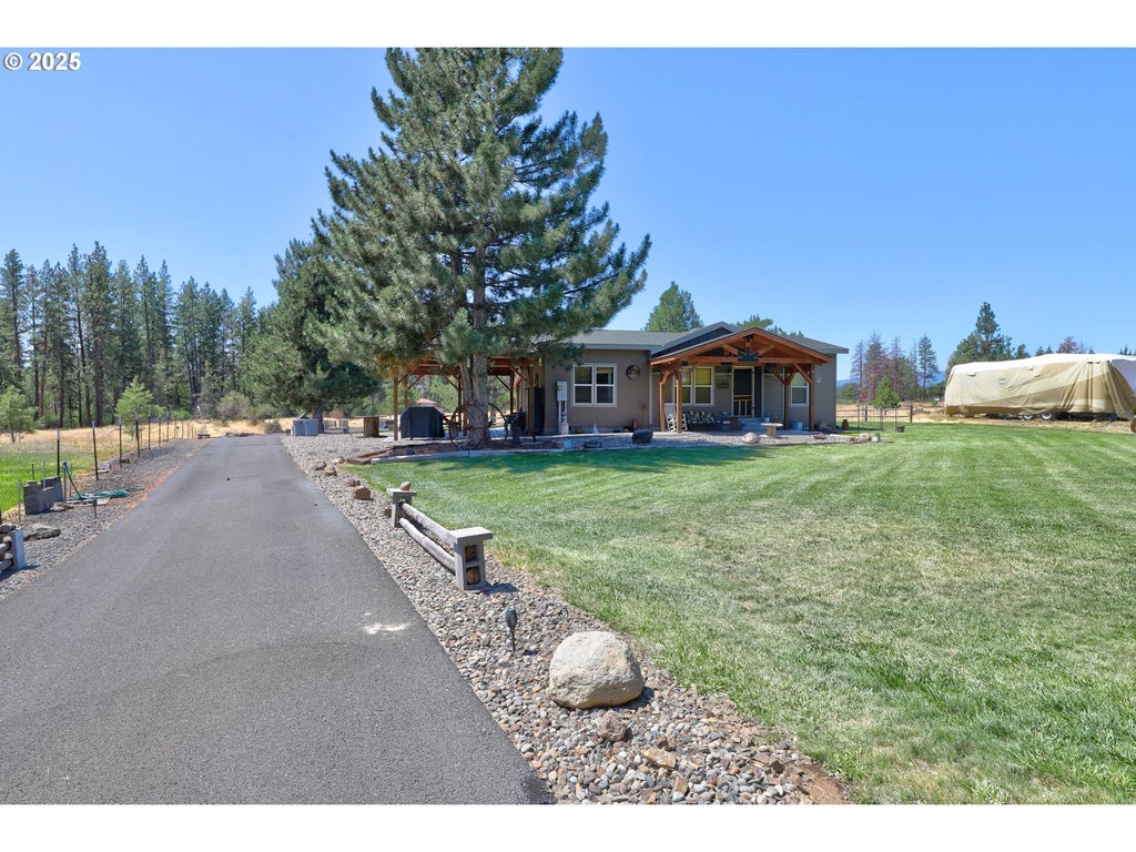 Rustic & Cozy Vacation Retreat in the Pine Hollow Recreation area of south Wasco County, tucked back in a secluded cul-de-sac, & just minutes away from all the recreation opportunities that Pine Hollow offers. This nearly one acre vacation getaway property was specifically designed with outdoor living in mind. One of the standout features of this property is the stunning timber-framed patio cover. The robust timber beams offer a touch of rustic elegance to compliment the stamped & stained concrete patio & provide the perfect space for picnics, outdoor games, or just hanging out. Strategically placed electrical outlets allow for integrated lighting & speakers which make it an ideal spot for evening gatherings, allowing you to extend your outdoor enjoyment well into the night. The Pine Hollow Recreation area offers easy access to a 9 hole golf course, including Putt Putt, year round fishing, motorized summer water sports July 1st through Labor Day, & the Deschutes River just 30 minutes away for rafting or fly fishing adventures. This property is perfect for weekend getaways or group campouts. Imagine cozying up by the outdoor firepit or engaging in a friendly game at the horseshoe pits, all within the comfort of your beautifully designed outdoor space. The home's interior features high ceilings, knotty alder cabinetry, a primary bedroom w/ensuite bathroom plus two additional bedrooms & guest bath. This home is ideal for those seeking a serene retreat or full time occupance. The property has a meticulously maintained lawn, enhanced by an in-ground irrigation system. Mature pine & fir trees dot the landscape, providing shade, privacy, & a picturesque natural backdrop. Additional features include a handy tool shed for extra storage, plenty of room to park an RV or two, & a 34'x45' level spot for a future shop building. Whether you're looking for a comfortable year-round residence or a seasonal getaway, this home offers a perfect blend of comfort & outdoor enjoyment.