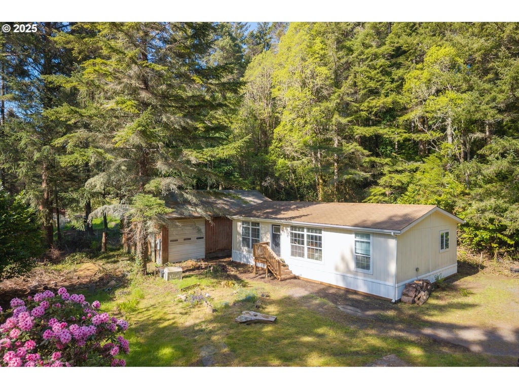 This affordable home offers privacy with room to grow in the heart of the southern Oregon Coast. A 2010, 3 bedroom/2 bath, Fleetwood nestled on 1.61 acres. Has mature, fruit-bearing cherry and apple trees-- you could be pressing your own cider this fall! With some TLC, the spacious 864 square foot shop can store all your toys. Just minutes from the ocean, dunes, Saunders Lake, and Tenmile Lake--whether you're looking for a peaceful escape or a basecamp for outdoor adventure, this property delivers!