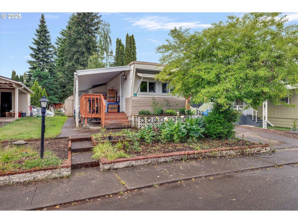 Cute single wide manufactured home located in a 55+ community. This home includes 2 bedrooms, 1 bath, a large living area open to the freshly updated kitchen with breakfast bar, nice sized guest bed with bath and large primary w/wall to wall built in closet in unit laundry and more. Outside you have a tool shed, spacious yard and carport. Recent updated include paint, windows, front & back doors, bathroom/kitchen updates and flooring. Space rent is $1,245/month.