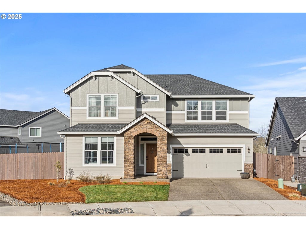 Welcome to this stunning 4-bedroom, 3-bathroom home, perfectly situated on a corner lot in one of Battle Ground’s most desirable neighborhoods! Step inside to find high-end finishes throughout, including quartz countertops, gas range and oversized island in a beautifully designed kitchen. This home boasts soft-close cabinets and drawers throughout. The spacious layout features a main-level bedroom and full bath, perfect for guests or multi-generational living. An oversized primary suite upstairs is a true retreat, offering ample space to unwind. Need more room? You’ll love the huge bonus room, ideal for a media, an office or a playroom. Delight in lush greenbelt views from the well-manicured backyard and covered patio space. With a large 3-car garage, there is plenty of room for your cars, toys and recreational gear. This community offers front yard landscaping, neighborhood park and access to great County maintained walking trails at the Gordy Jolma Family Nature Area. Location is everything! This home is just minutes from shopping, restaurants, and entertainment, making it easy to enjoy everything Battle Ground has to offer while still savoring the tranquility of your own private retreat. Don’t miss your chance to see this incredible property in person!