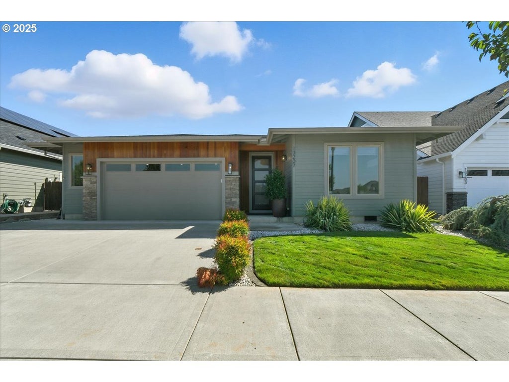 Formerly the Kingston model, this stunning one level home showcases custom cabinetry, a huge island, and slab quartz counters with a gas cooktop at the heart of the kitchen. The open great room features a cozy gas fireplace, built-ins and expansive windows that fill the space with natural light. Hard-surface flooring flows through most of the home, complemented by upgraded lighting throughout. Step outside to a large covered patio and enjoy an easy maintenance yard designed for relaxation and entertaining.The neightborhood park is right across the street. Great access to Legacy and Freeways. Open Sunday, 9/21 1pm-3pm