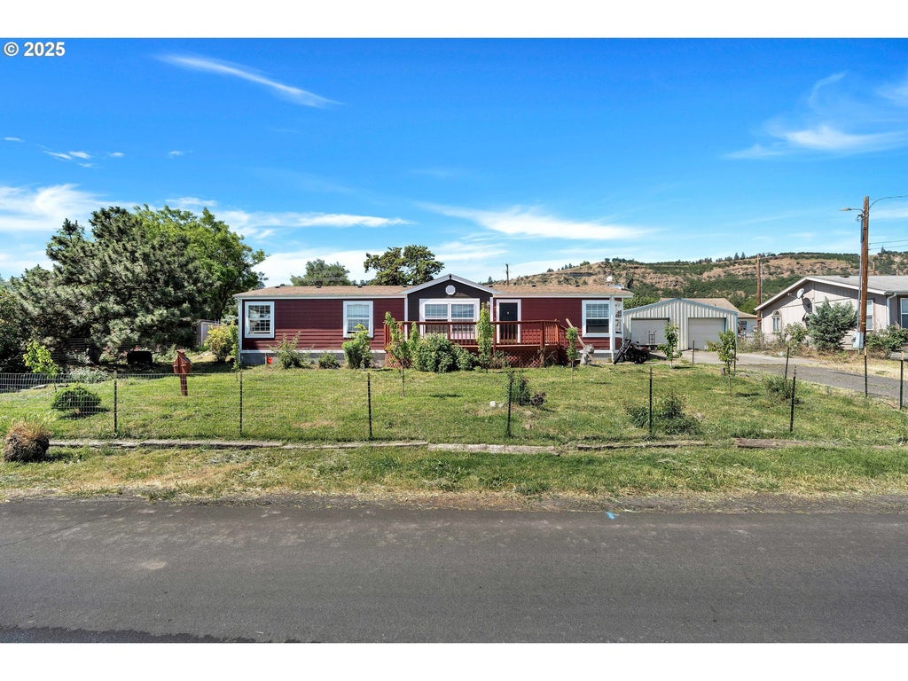 Double lot mobile home on real land with an oversized 25x40 detached garage featuring an enclosed back room—ideal for an ADU, workspace, or flex space. Inside, high ceilings offer a blank canvas perfect for sweat equity or a potential flip. No flooring currently, but the seller is willing to install flooring out of proceeds at close. The backyard features a patio and garden area, ready for outdoor fun. Great opportunity to create value!
