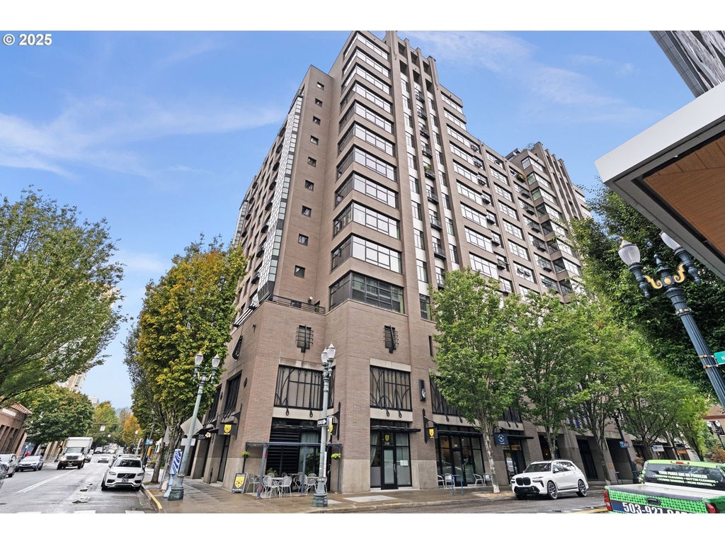 Urban living in the heart of the Pearl, in one of the district’s most iconic buildings! This open, light-filled loft serves up elevated vibes with a wall of windows that frame the city skyline and West Hills, delivering every sunset straight into your living room. Throw open the doors to your private Juliet balcony and take it all in! Hardwood floors, tall ceilings, and crisp walls create the perfect canvas for showcasing art and personal style. The primary bedroom offers retreat with privacy sliders and a double closet, while the spacious bathroom features plenty of storage and a soaking tub/shower combo that's ideal for unwinding after a long day or staying loose after yoga in the Community Room. The sleek kitchen is more than equipped for cooking or entertaining with stainless steel gas appliances, quartz countertops, and a movable island with wine storage — though it will happily hold your leftovers from the countless nearby restaurants. In-unit laundry with extra storage and a convenient garbage chute just outside the door makes chores a breeze, and the deeded parking and storage space add everyday practicality. Life at The Elizabeth Lofts includes 24/7 concierge and security, a gated parking garage, and opportunities for connection in the Community Room with its library, kitchen, and outdoor grilling space. Yoga classes are offered three times a week, welcoming beginners and experienced alike! Bop outside with your pup to the adjoining outdoor plaza with the historic Lovejoy Columns, or immerse yourself in the vibrance of the Pearl: unbeatable shops and restaurants, Powell’s, parks, and transit are all at your fingertips. Whether as your home base, a pied-à-terre, or an income property, this is a special chance to call one of Portland’s most desirable addresses home.