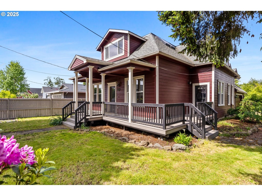Charming Craftsman Retreat in the Heart of Mount Angel! Located on a peaceful corner lot, this beautifully manicured property welcomes you with a lush front yard, a tranquil water feature complete with fish, and a long-lasting Trex front porch—perfect for sipping your morning coffee or relaxing at sunset. Inside, warmth and comfort await with a cozy living room anchored by a gas fireplace, flowing into a bright dining space and a well-equipped kitchen featuring granite countertops, stainless steel appliances, and engineered hardwood floors. Two bedrooms and a full bath are conveniently located on the main level. Upstairs, the expansive primary suite is a true sanctuary—flooded with natural light from skylights and tall windows, featuring soaring ceilings, a luxurious soaking tub, separate shower, and a walk-in closet big enough for all your storage dreams—with its own bonus room ideal for a private office, nursery, or creative space. A dedicated mini-split system ensures year-round comfort. On the opposite end of the home, an additional upstairs room with its own bathroom offers ideal separation for guests, a bonus space, or even potential for dual living. The oversized garage adds functionality, and there's even space to park an RV. Major systems have been recently updated: new gas furnace (2022), AC (2023), and gas water heater (2023)—giving you peace of mind. Just minutes from local shops, restaurants, and Mount Angel’s iconic Abbey, this unique home blends character, space, and quiet comfort in one of the area's most charming neighborhoods.