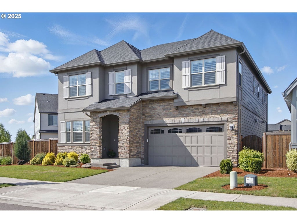 Welcome to this stunning nearly new 2020 built home in the sought-after Sunset Ridge II neighborhood surrounded by community parks&play structures.Sitting on the largest corner lot in the subdivision,this home offers enhanced privacy,abundant natural light,&no neighbors directly on one side.Inside is 4 bedrooms, a loft, a bonus room, and a main level office. The open-concept main level features high ceilings,LVT flooring,&neutral tones throughout.A dedicated office with French doors, wainscoting,& bright natural light makes for an ideal work space.The formal dining room showcases box beam ceilings & wrapped columns, the living room features crown molding&a gas fireplace.The kitchen is a chef’s dream with a large center island, breakfast bar, quartz countertops, subway tile backsplash, touchless faucet, stainless steel appliances, gas cooking, crown molding& a walk-in pantry. Adjacent is a nook with crown molding& a sliding door to the rear patio. Plantation shutters add a timeless touch throughout the home.Upstairs, a loft& large bonus room with French doors offer flexible living spaces. The private primary suite is tucked away at the rear of the home for privacy and features French doors, coved ceilings, dual walk-in closets, & an ensuite bath with dual sinks, quartz counters, a soaking tub, and a walk-in shower.A dual-sink hall bath with quartz counters,& a laundry room with utility sink,tile floors,linen closet & quartz counters, complete the upper level.The finished garage with high ceilings provides excellent storage, while the low-maintenance, fully fenced backyard is perfect for relaxing or entertaining ready for all your ideas. Enjoy territorial views from many upstairs windows.With easy access to shopping, dining, major highways,&top employers, this home offers the perfect blend of comfort,style,&convenience.Ask about a free 2 year lender paid interest rate buy down!