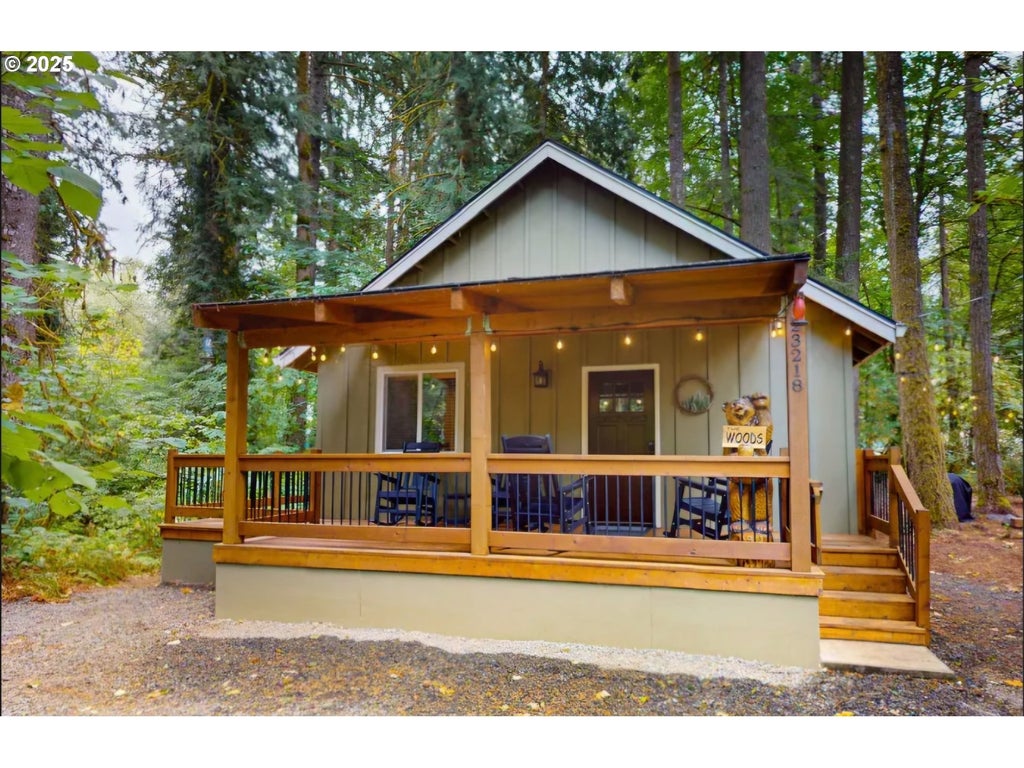 Charming mountain cabin retreat in Welches, OR nestled at the end of a peaceful road in Mt. Hood Village, this cozy cabin offers the perfect blend of rusticcharm and modern comfort. As you approach, you’re welcomed by a charming wrap-around porch—complete with a friendly hand-carved bear—ideal forsoaking in the serenity of the surrounding nature.Step inside through brand-new storm doors featuring retractable screens—an energy-efficient upgrade thatinvites fresh mountain air in during summer and retains warmth through the winter months.The heart of the home is a stunning 1937 Steiner-style fireplace,showcasing a distinctive heart-shaped stone centerpiece. Paired with a high-efficiency insert, it’s the perfect feature to keep the cabin warm and inviting onsnowy days.Fully renovated in 2018, the interior boasts granite countertops, abundant storage, stainless steel appliances, a full bathroom, and in-unit washerand dryer—ensuring comfort and convenience year-round. Outside, a cedar-enclosed wood storage shed is fully stocked with firewood to keep your hometoasty. An additional custom-built shed provides ample space for all your mountain gear—kayaks, paddleboards, golf clubs, bikes, and more—making thisproperty truly geared for outdoor adventure. Directly across Highway 26, explore the 550-acre Wildwood Recreation Site with its old-growth forests and thescenic Salmon River. Within minutes, enjoy world-class skiing, hiking, and biking trails, including favorites like Zigzag Falls, Mirror Lake, and Trillium Lake.Local shops, restaurants, a golf course, and grocery stores are just a short drive away. Whether you’re seeking a weekend escape or a full-time mountain lifestyle, this delightful cabin is a must-see!