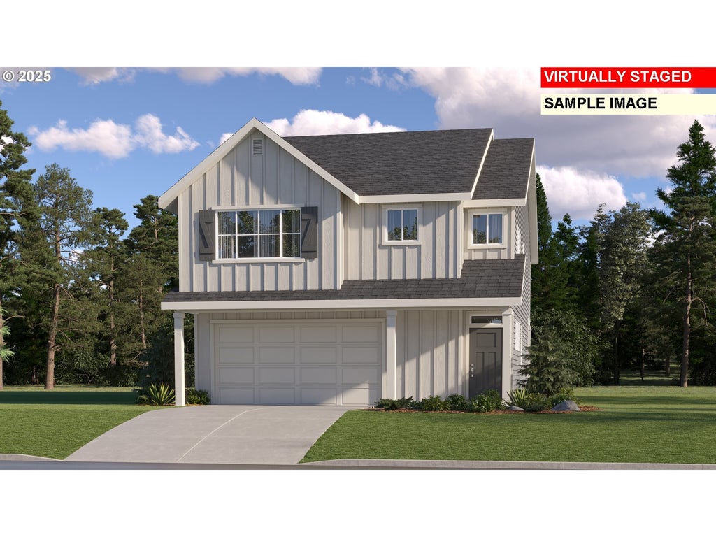 The Great Room, kitchen and dining room are situated in a convenient and contemporary open floorplan on the first level of this two-story home, while a bedroom is ideal for overnight guests or a home office. Four more bedrooms surround a versatile loft upstairs, including the luxe owner's suite which is comprised of a restful bedroom, en-suite bathroom and walk-in closet. This home includes a refrigerator, washer/dryer, central air, and window blinds! Renderings and sample photos are artist conceptions only. Photos are of similar or model home so features and finishes will vary. Taxes not yet assessed. Incentives available with the use of our preferred lender! The Jasmine plan, Homesite # 283, estimated completion June, 2025.