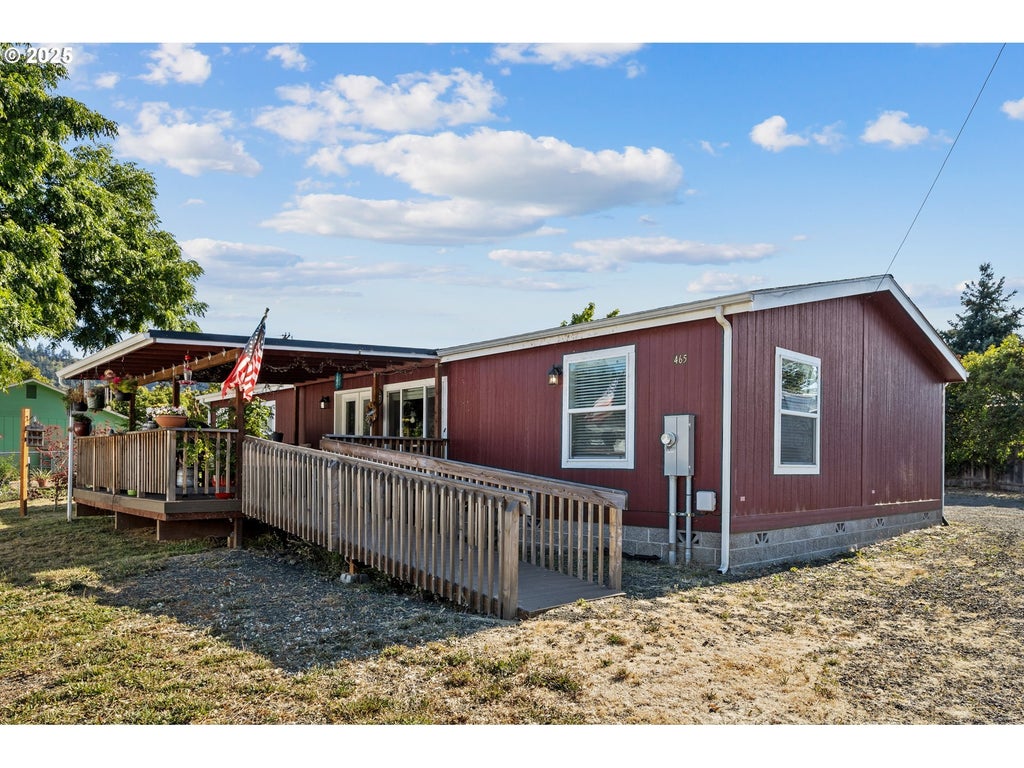 Welcome to this inviting single-level home in Winston, Oregon! Built in 2021, this 3-bedroom, 2-bathroom residence offers 1,620 square feet of bright, open living space. The spacious living room seamlessly connects to a dining area and well-equipped kitchen with a center island, pantry, and all major appliances—perfect for entertaining or everyday comfort. Step through double doors to enjoy a covered Trex deck ideal for outdoor dining or relaxing year-round. The fully fenced yard offers ample room for pets, play, or gardening. You'll also appreciate the attached three-car garage, RV parking, and accessibility features including a ramped approach and minimal steps. All on a generous 0.33-acre lot in a great neighborhood close to schools and town!